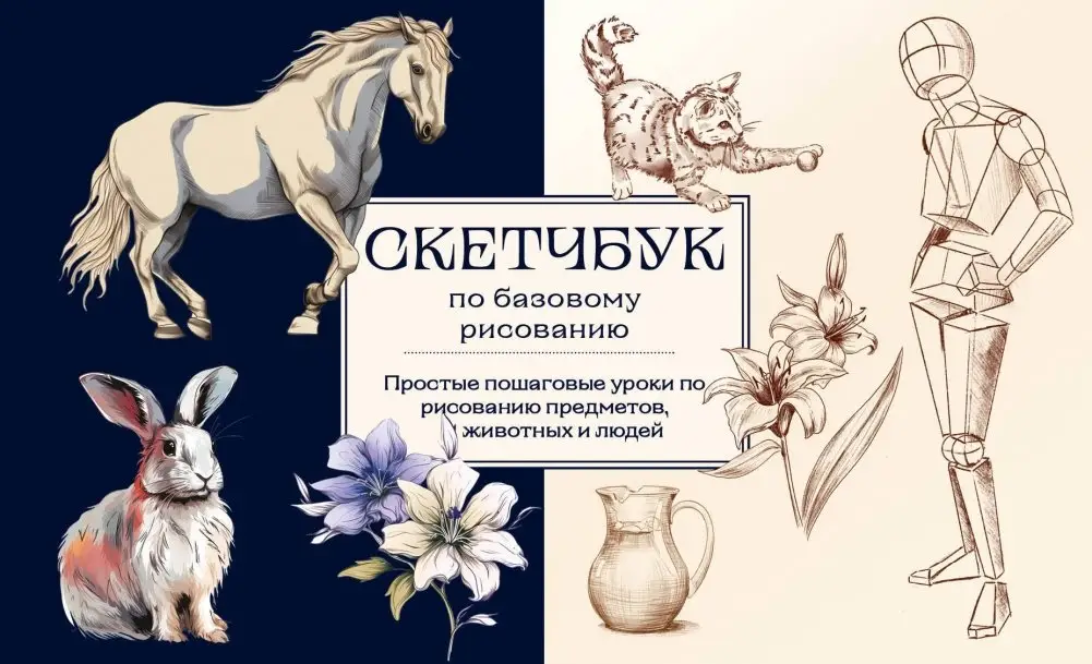 This sketchbook acts as a compact self-study guide, designed to teach the fundamentals of drawing. Step-by-step masterclasses clearly demonstrate how to start drawing independently. The learning process begins with understanding perspective and volume using simple shapes, progressing to sketches of animals and people. Blank pages offer space for practicing drawing various objects, people, and themes, as well as for working on composition and quick sketches. Its small size makes it convenient for drawing anywhere.