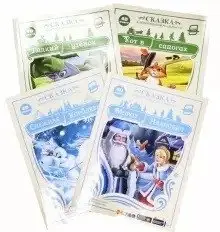 This four-book collection invites young readers into a world of magical stories enhanced by augmented reality technology. The set includes classic tales such as "The Ugly Duckling," "The Snow Queen," "Puss in Boots," and "Moroz Ivanovich." The stories are fully narrated and available in audio format, making them suitable for children who are not yet reading. Characters come to life from the pages, presenting engaging scenes.