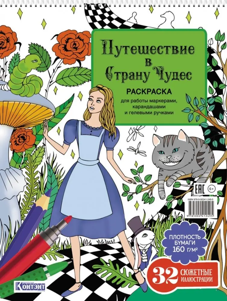 Эта раскраска перенесёт вас в волшебный мир приключений Алисы в Стране Чудес. Она содержит 32 проекта, предназначенные для работы с маркерами, цветными карандашами и гелевыми ручками. Издание выполнено на плотной бумаге и имеет удобное скрепление на пружине.