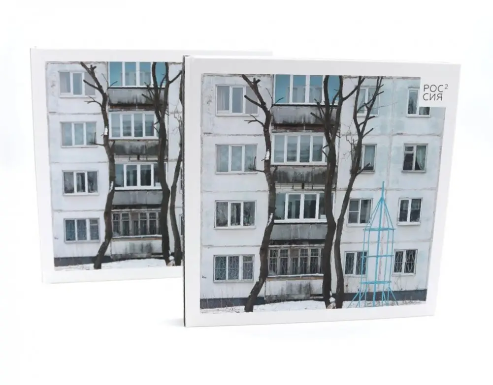 This set contains two identical copies of the photo album "Russia in Squares," featuring works by Dmitry Markov. The photographs were selected based on a successful exhibition and include new images captured in recent years. The album aims to preserve the photographic archive in a reliable format, considering the fragility of online image access. It reflects recognizable elements of everyday life, such as childhood in the suburbs, neighbors, and familiar city streets, serving as part of a shared history.
