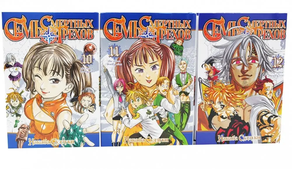 This set comprises volumes 10 through 12 of Nakaba Suzuki's manga series, The Seven Deadly Sins. In volume ten, Meliodas, having regained his strength, attempts to warn the Ten Commandments, but the demons are intent on conquering Britannia. Ban also faces them in a fierce battle, reconnecting with loved ones.
