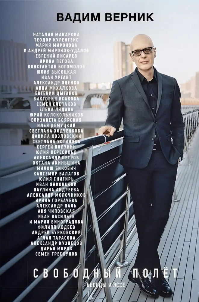 This book by Vadim Vernik, a renowned journalist and host of the program "2 VERNIK 2", features a collection of essays and conversations with prominent figures in the arts. The publication includes dialogues with personalities such as Svetlana Khodchenkova, Elizaveta Boyarskaya, Danila Kozlovsky, Yulia Peresild, Ivan Urgant, Konstantin Bogomolov, Anya Chipovskaya, Paulina Andreeva, and Alexander Petrov. The book offers insights into the behind-the-scenes experiences and perspectives of famous actors and directors.