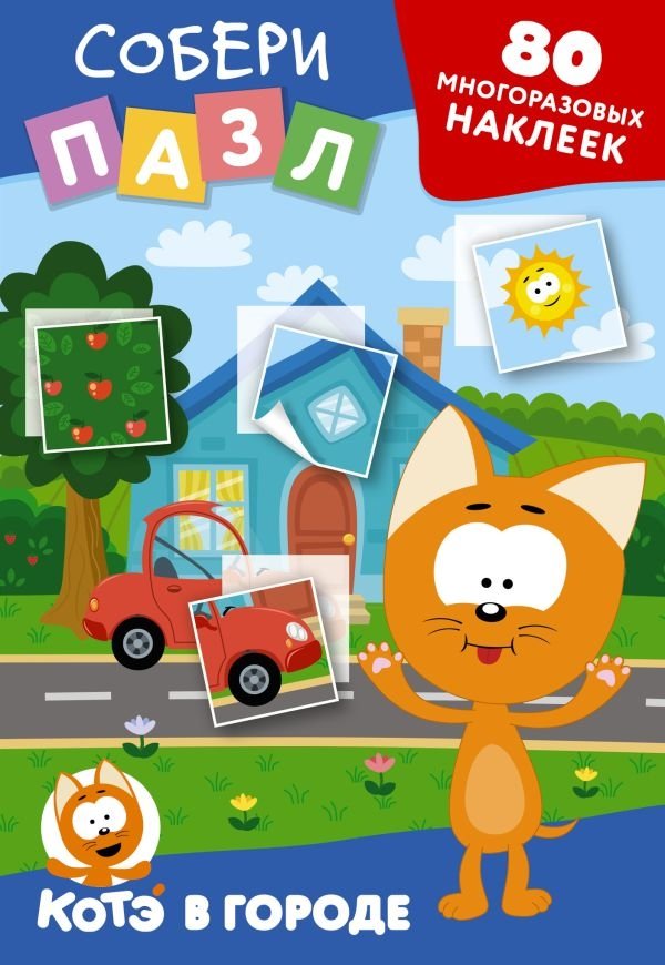 Многоразовые наклейки: собери пазл! Котёнок Котэ в городе | Reusable Stickers: Kitten Kote in the City Puzzle